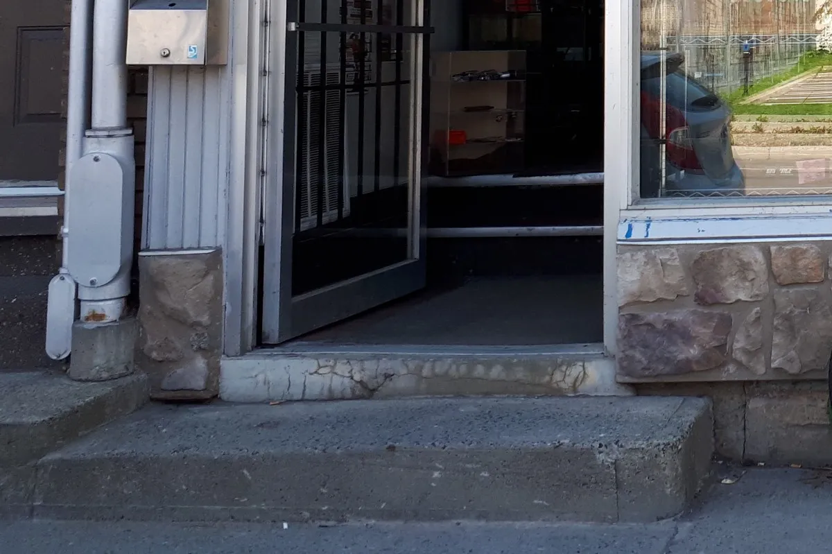 Il y a deux marches à l'extérieur et deux autres à l'intérieur.