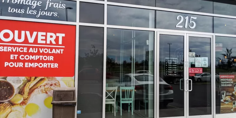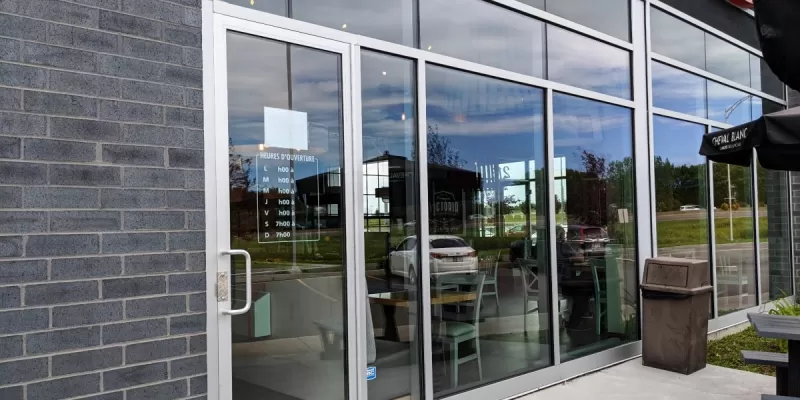Les deux portes qui donnent l'accès au commerce sont accessibles : la porte principale et la porte de la terrasse à côté gauche du bâtiment.